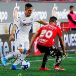 นักเตะของ Club Tijuana กำลังพยายามขัดขวางนักเตะของ Cruz Azul ในการแข่งขัน